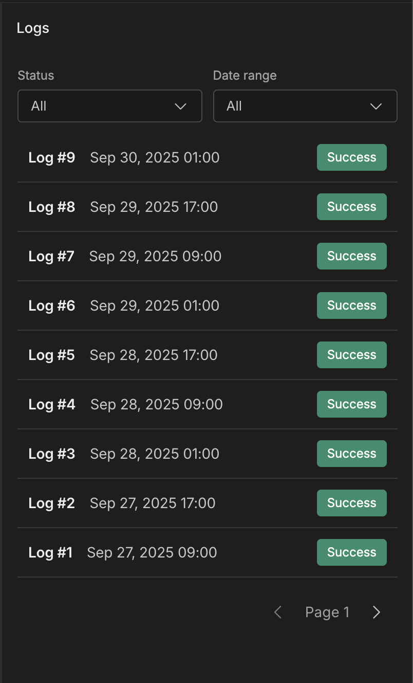 This will open up a sidepanel with all successful and failed runs of an automation.