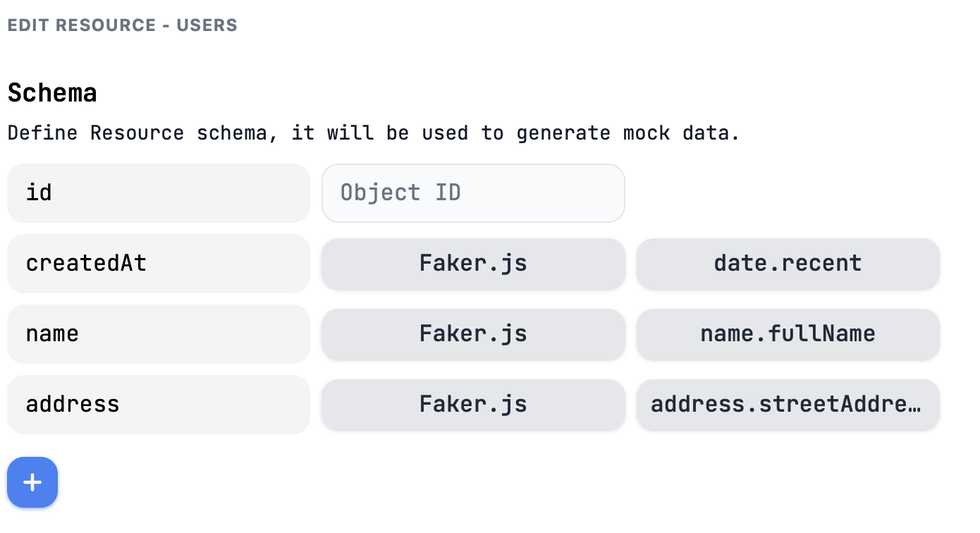 Next, create a new resource under this new project and fill it with sample data, for this example, we will use names, addresses and 'created at'