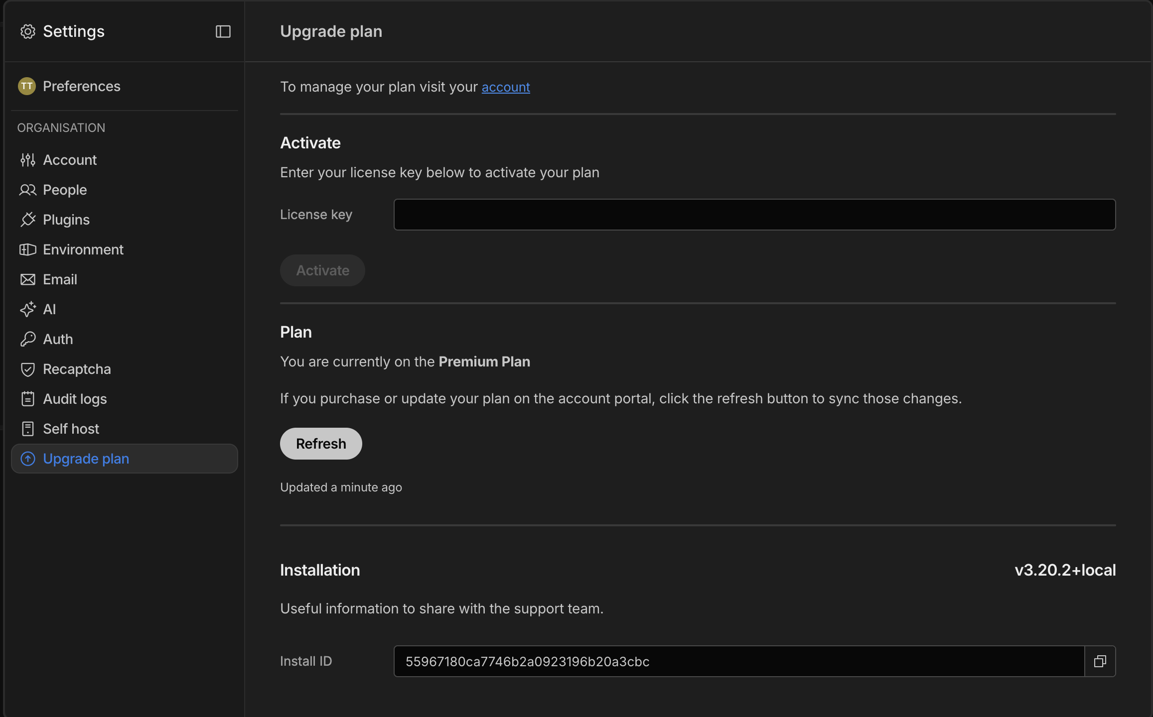 After refreshing your upgraded plan will be applied to the installation: