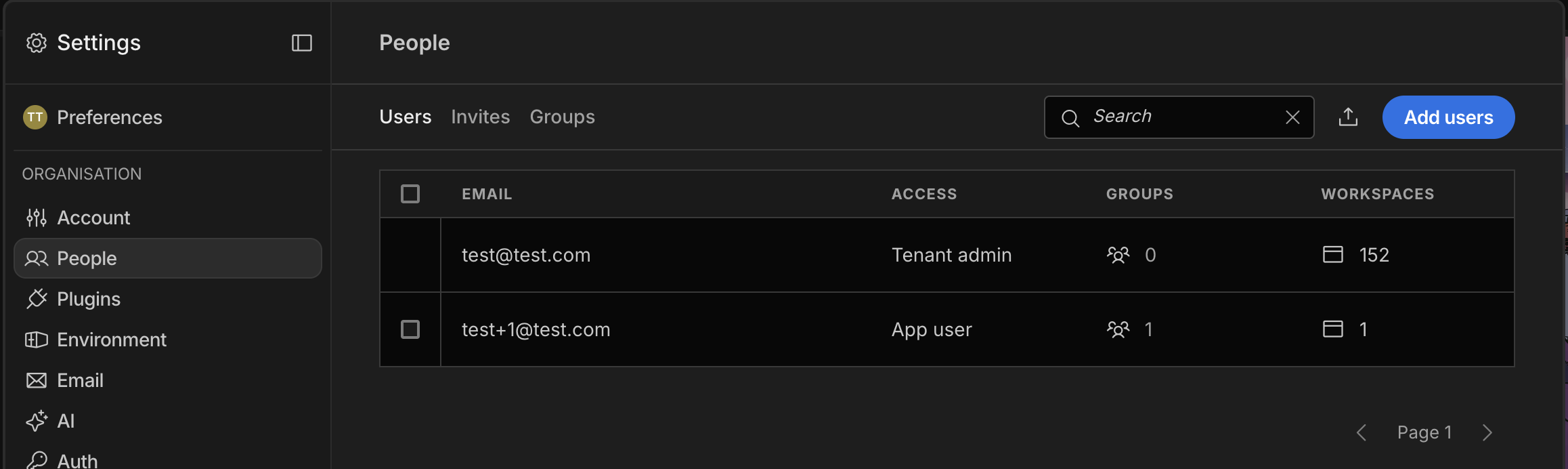 Users can have roles for both the Budibase installation and app-specific, read more about that in User Roles.